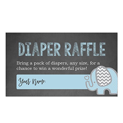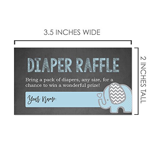Blue Elephant Diaper Raffle Cards for a Baby Shower - 50 Count