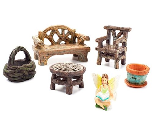 Rustic 5pc Twig Furniture Set, Bench, Chair, Table, Basket and Flower Pot plus Bonus Fairy