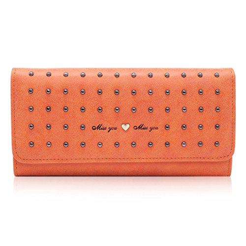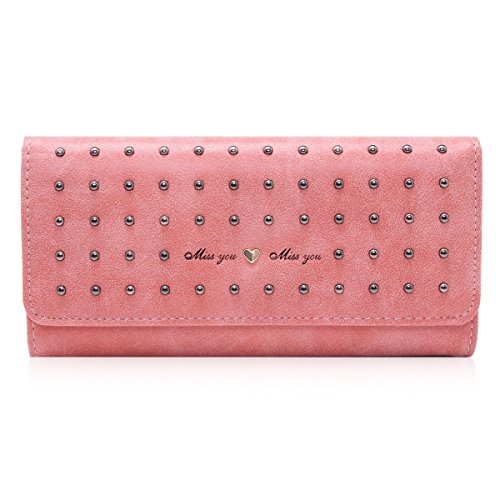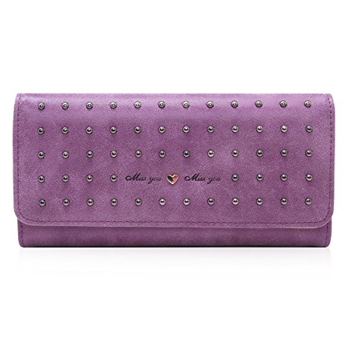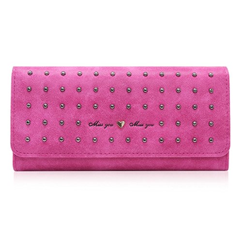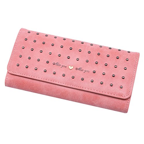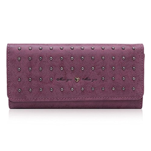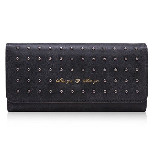 Damara Women Vintage Nubuck Leather Cards Holder Rivet Trifold Wallet,Black