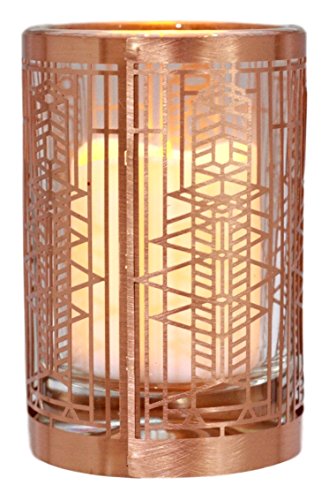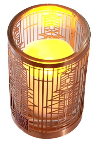 This Frank Lloyd Wright Votive Candle Holder is made of brass. This decor comes with a battery operated flameless tea light. The tea light candle has an LED light source to replicate the effect of a yellow flicker flame.