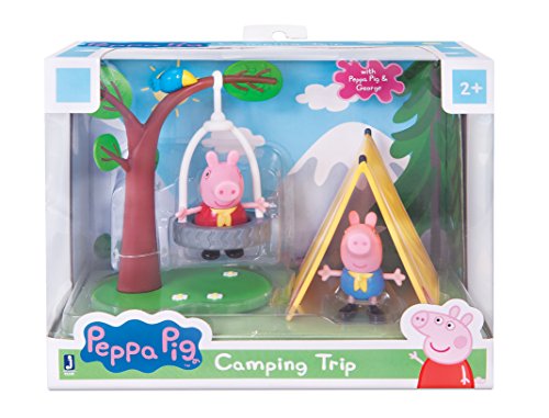 Peppa Pig and her little brother, George, are dressed in their Scout outfits and ready to sleep under the stars in their tent. Peppa and George can take turns swinging in the tire swing with a little Birdy friend! Both the swing and tent are perfectly scaled to play with your other Peppa Pig playsets and vehicles – collect the whole set and play with all of peppa's friends!Feature