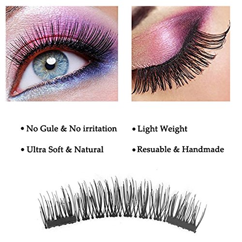 -. Feature : Magnetic Eyelashes, Minyee [New Version] Dual Magnets No Glue Fake Lashes, Natural 3D Reusable False Magnet Eyelash, Ultra-Thin Handmade Lash [1 Pair/4 Pieces]