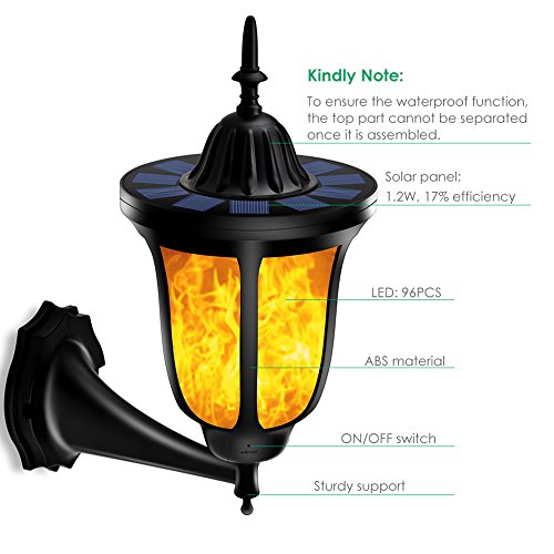 TomCare Solar Lights Flickering Flames Wall Lights 96 LED Solar Wall Lights Outdoor Dancing Flame Light Wireless Waterproof Wall Mounted Night Lights New Lantern Design for Garden Door Patio Yard(2)