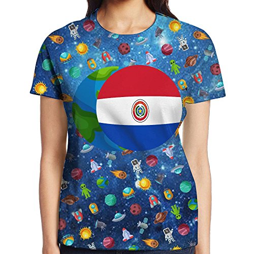 (AAAPlus)/Accessories/Hats/DIRECT FROM USA/AAAPlus Paraguay Flag Women's T-Shirt Round Neck Colorful 3D Printed Funny Fashion T Shirt Tee Shirt