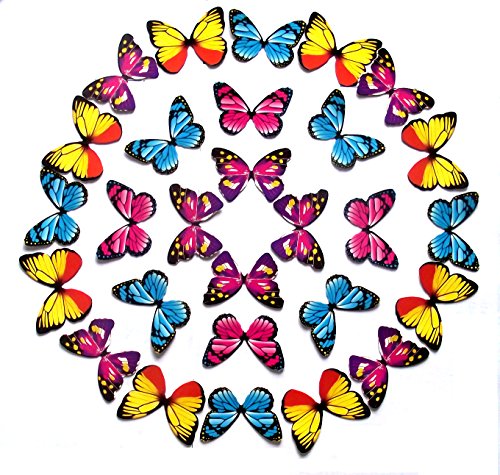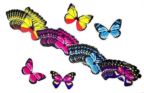 40 pcs AyFashion Paper Butterflies - 4 Colors Foldable Double Wings Butterfly - Cupcake Toppers Home DIY Decor For Birthday Wedding Party - 1.95 Inch