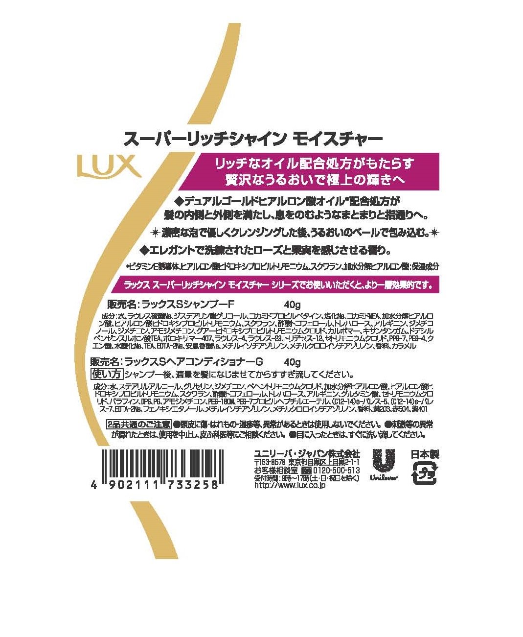 Lux Super Rich Shine Moisture mini moisturizing shampoo-conditioner pair set 40g + 40g