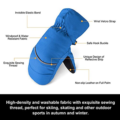 Features: Made of high-density waterproof fabric,windproof, but ban long time soaking.The middle layer is filled with thick and warm cotton, comfortable, the inner layer plus velvet, warm and soft,durable. Invisible elastic band and magic stick,this ultimate and must-have accessory is great for kids in winter and autumn! Perfect for your kids go out for skiing, skating, playing games and other outdoor sports.
