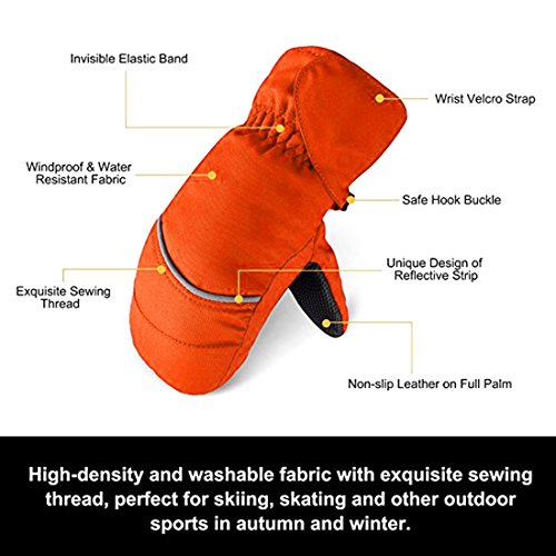 Description: Package Contain : 1Pair x Kid Gloves Product Material : Waterproof Nylon Soft Fleece Lining Product Color: Multicolored, Blue, Orange, Red Product Size: XS--Palm length 11cm,Wrist Length 5.5cm,Palm width 7cm, suitable age: 1-2 years old(For reference only). S--Palm length 11cm,Wrist Length 5.5cm,Palm width 8cm,suitable age: 3-4 years old(For reference only). M--Palm length 12cm,Wrist Length 6cm,Palm width 8cm,suitable age: 5-6 years old(For reference only). L--Palm length 12cm,Wrist Length 6cm,Palm width 9cm,suitable age: 7-8 years old(For reference only) Product Weight: 80G/2.82OZ Applicable gender:neutral / boy and girl