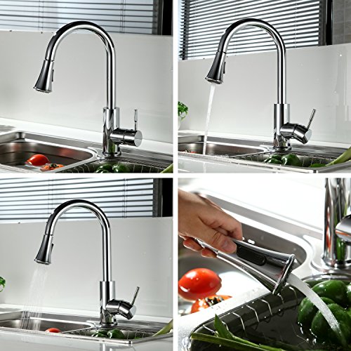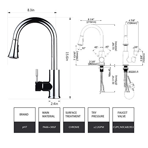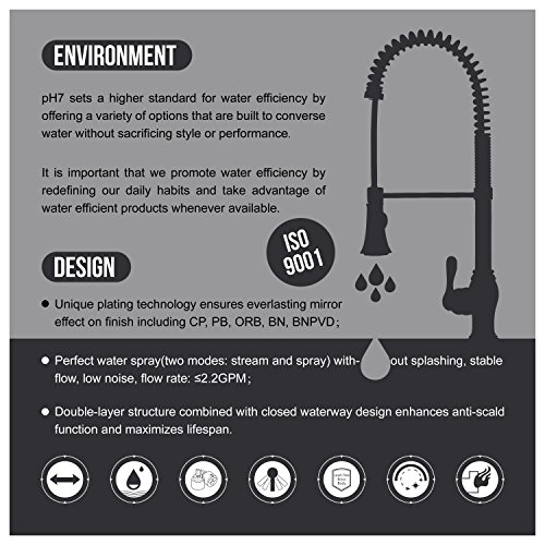 pH7 Single Handle Pull Down Sprayer Kitchen Sink Faucet Stainless Steel Kitchen Faucets with Docking System Chrome
