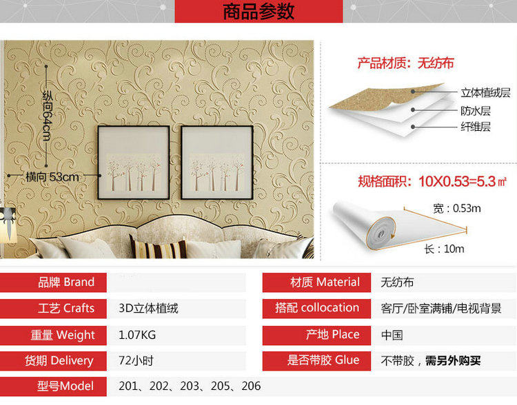 Size: 0.53*10m/roll , 0.53 square meter/roll