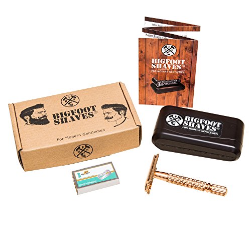Bigfoot Shaves Double Edge One Blade Safety Razor + Swedish Steel Blades + Mirror Case, Heavy Duty, 100% Pure Raw Manliness – Designed for Modern...