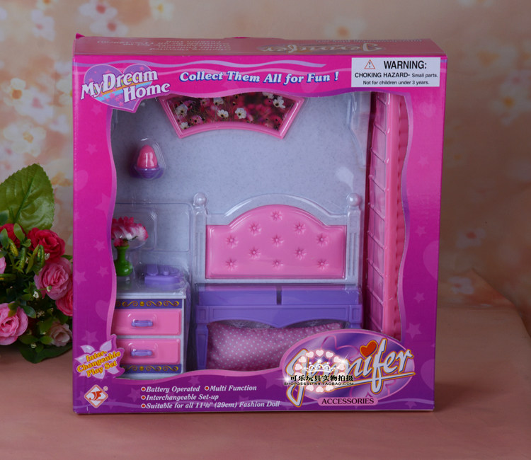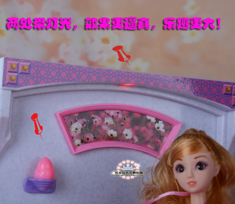 【Product Description】 Pink dream Princess bed (battery to be self-contained) for Barbie, can children, peaches, small cloth, Jenny and other 1/6 dolls 30cm dolls use, the quality is not bad. Simulation scene at home toys, great fun. Can cultivate children's hands and brain ability, play children's imagination, the development of intellectual level of educational products, but also accompanied by the parents to complete and promote the exchange of parents and children, especially for parent-child activities. Natural high-quality plastic production, non-toxic security paint, environmentally friendly texture is good, reliable and durable. Foreign trade exports of Barbie furniture, the price is very high Ha!