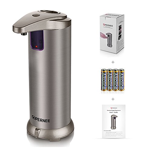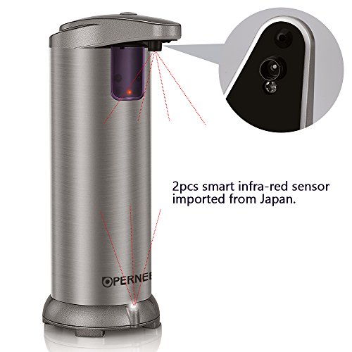 Soap dispenser, OPERNEE Automatic Touchless Stainless Steel Fingerprint Resistant IR Sensor Hand Free Auto Soap Dispenser Perfect for Kitchen and Bathroom[battery included]