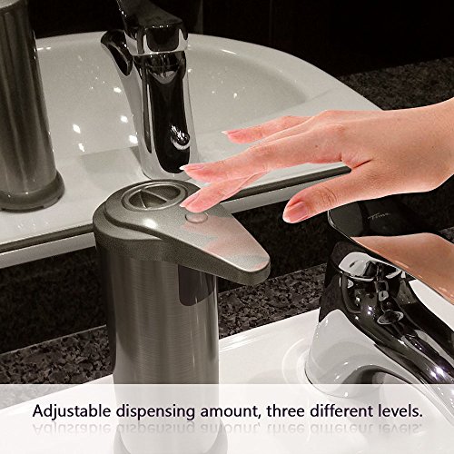 【Adjustable Automatic Soap Dispenser】There are Three different levels. You can adjust the amount of soap dispensed when you wave your hand under the motion detector. No dripping or trailing, minimizes soap waste.