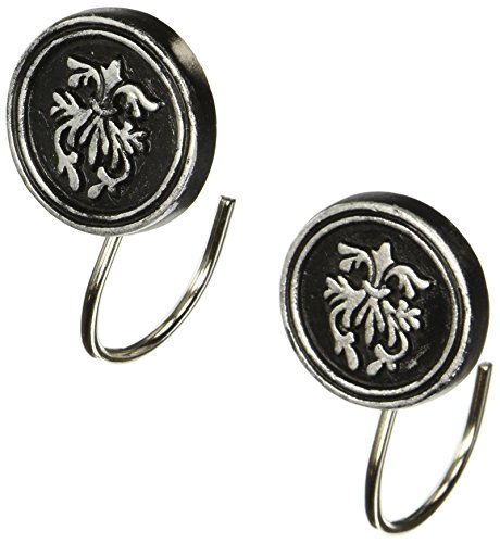 Carnation Home PHP-BAL/163 Fashions Balmoral Resin Shower Curtain Hooks, Black and Silver, Set of 12