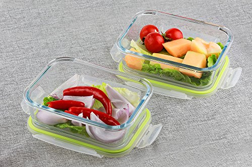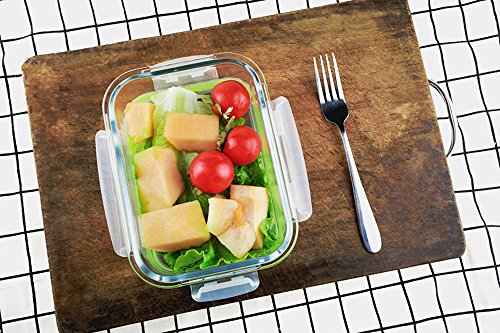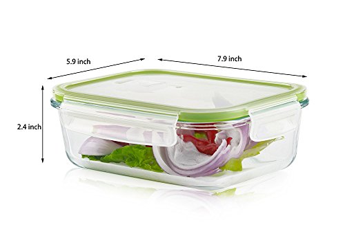 LIVING EXPRESS 6 Pieces Glass Food Storage Container Set with Snap Locking Lid,Airtight,Microwave,Oven,Freezer,Dishwasher Safe,BPA-Free (Large Square)
