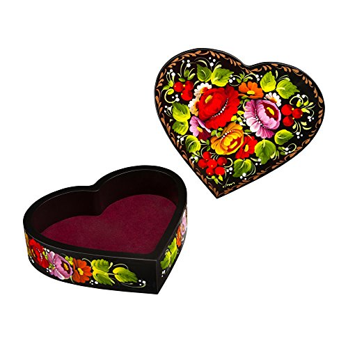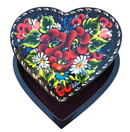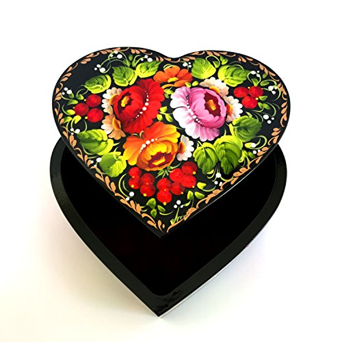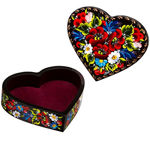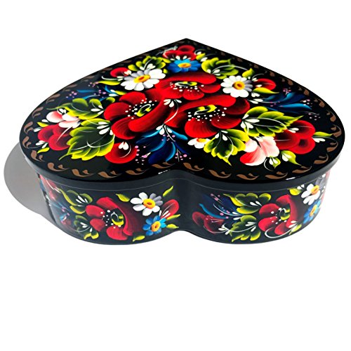 -. Feature : Item dimensions: 4.7" x 4.7" x 1.5". This item will be a bright and elegant gift for your Loved Ones! / Each Lacquer Box is crafted and professionally hand painted in Ukraine in an ancient, traditional manner named Petrykivka. / Carefully made of wood, hand decorated with high quality acryl paints and coated with deluxe lacquer finish. Made in the heart of Europe - Central Ukraine. / Comes in a glossy white cardboard box, ready for your gift message. Our lacquer boxes make wonderful gifts! (for Spanish-speaking buyers: regalo para mujeres caja de laca en forma de corazon) / This item is truly unique and our stock is really limited! We can not get many of these items from the manufacturer, only a few of each pattern! Just press the "Add to Cart" yellow button at the right top of this page to get your Exceptional Jewelry Box rushed straight to your door!