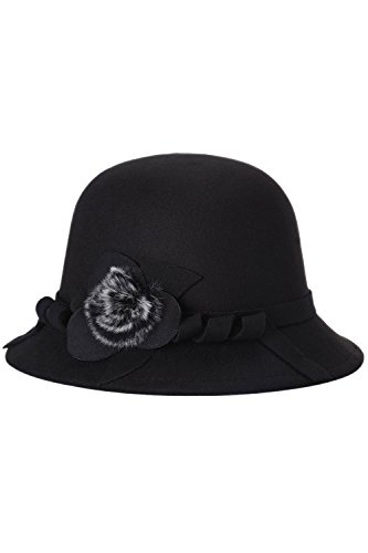 Product DescriptionWomen Fall Winter Cloche Bucket Bowler Dress Hat Cap With Flower0