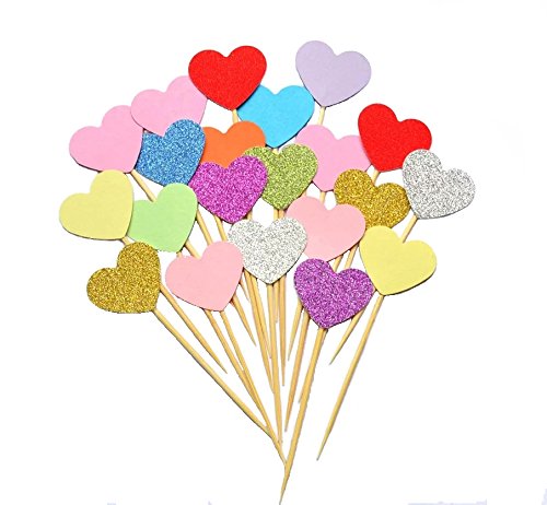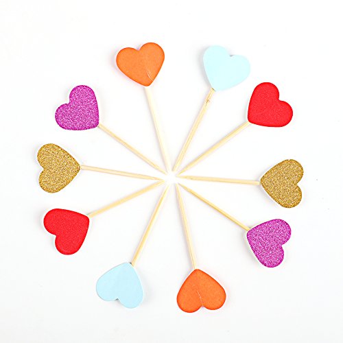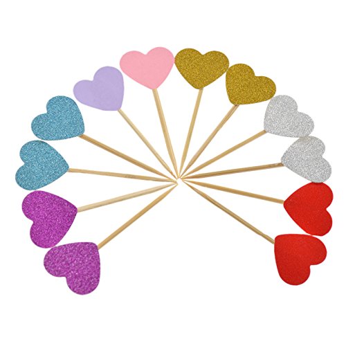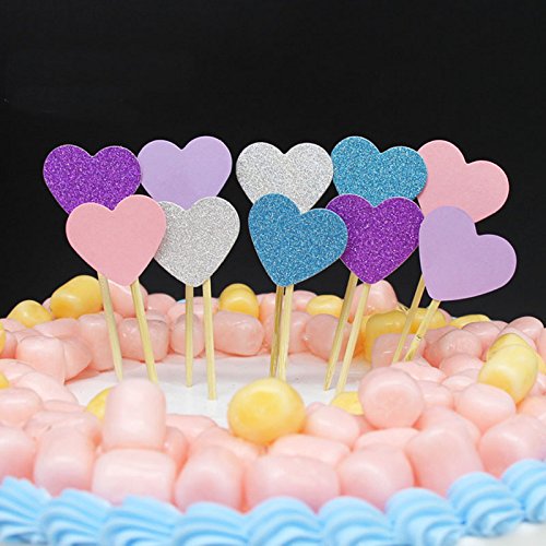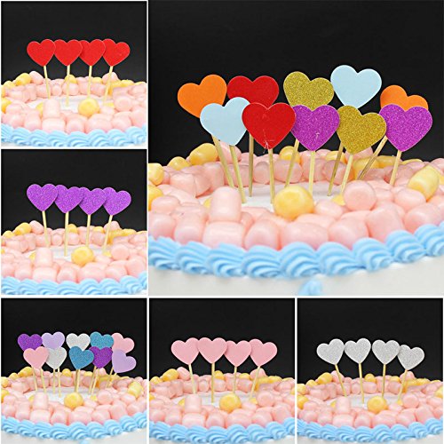 50pcs Heart Shape Cupcake Topper Kids Birthday Wedding Party Festive Event Cake Decoration Supplies