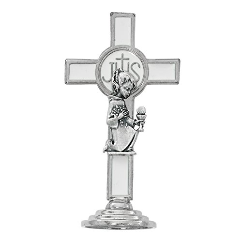 Girls First Communion Alloy White Enamel Cross, 3 1/4".