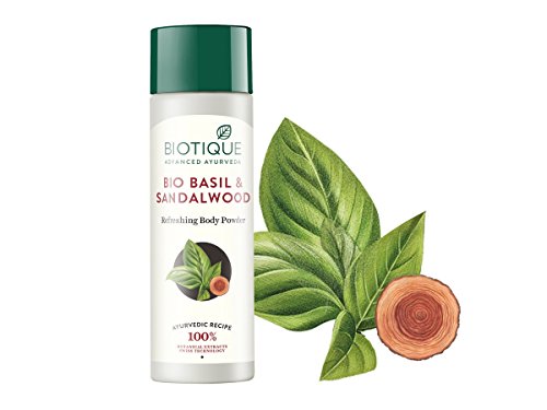 Biotique Bio- Basil Red Sandalwood Body Talc. A fine superior grade talc that gives a smooth, cooling effect to skin after bathing. Contains extracts of Margosa, Basil, Red Sandalwood along with Sandalwood powder. Provides day long protection from perspiration and bad odour. Result: With Basil Talc, your skin is refreshed and smooth through out the day. Direction for use: Apply appropriate amount to the skin, smooth gently. Major Ingredients: Basil Extract Red Sandalwood Extract Basil ExtractFeature