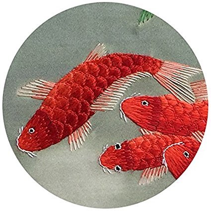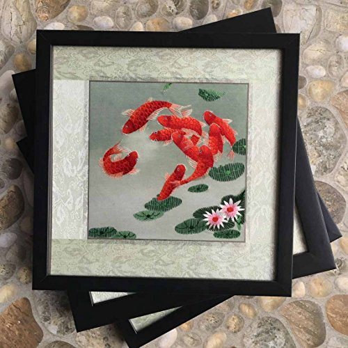 100% Handmade Susho Silk Embroidery Painting Framed Nine Red Fish Swimming Painting, Fine Silk Thread on Silk Fabric by Embroidery Artist, Crative Gift for New Year Feng Shui Decoration SilkArt023