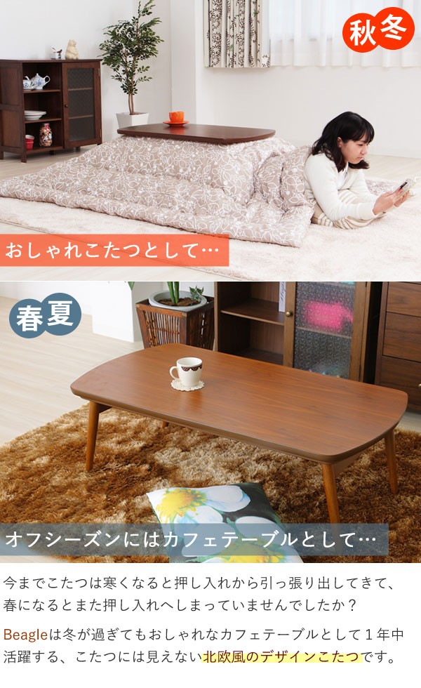 ・オフシーズンにはカフェテーブルとして使えるモダン調のコタツ。