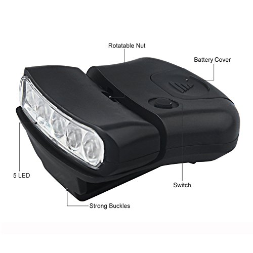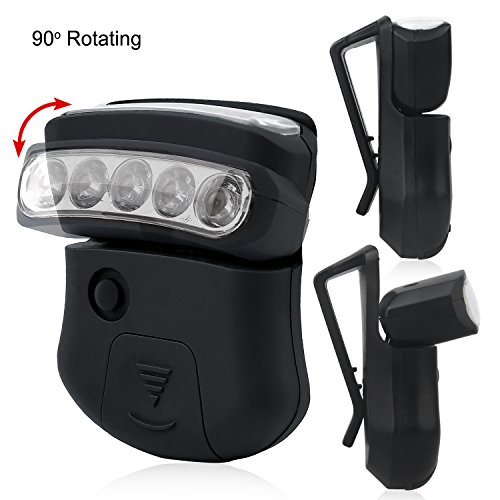 90 DEGREE ADUSTABLE:hands free light can casts light up to 20ft with 90°rotating to get a good angle of view, 5 LEDs 30 lumens illuminate your darkness.