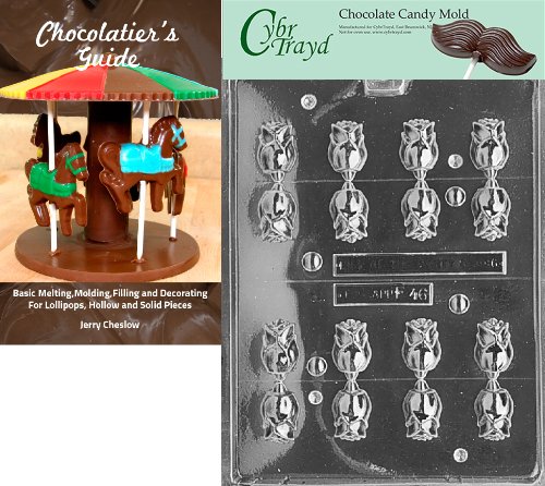 Cybrtrayd "Small 3D Rose Lolly" Fruits and Vegetables Chocolate Candy Mold with Chocolatier's Guide