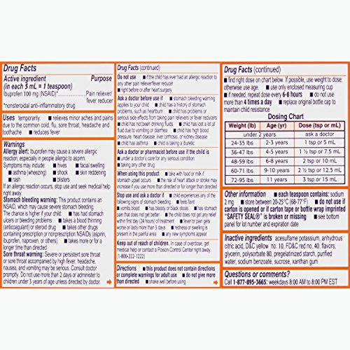ReleaseDate : 2016-07-25 Studio : Johnson Johnson - Ketotifen Publisher : Johnson Johnson - Ketotifen Binding : Health and Beauty Product Description Bring your child fast fever reduction and relief from minor aches and pains with Children's Motrin Oral Suspension. Containing 100 milligrams of ibuprofen per teaspoon, this product provides up to eight hours of relief from minor aches and pains due to the common cold, flu, sore throat, headache, and toothache. This product is for children ages 2 to 11. 0