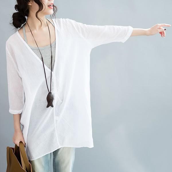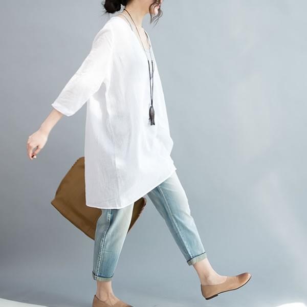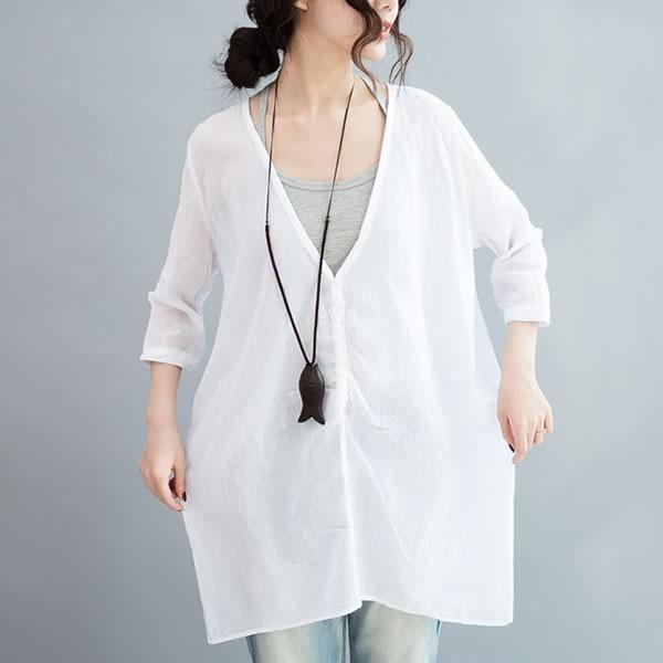 | ゆったり 深Vネック ブラウス チュニック ミニ丈 体型カバー 七分袖 インナーキャミ付き 【チュニック丈 ブラウス レディース 女性 黒ブラックblack カットソー トップス 無地 ブラウス チュニック丈 size mini】 |