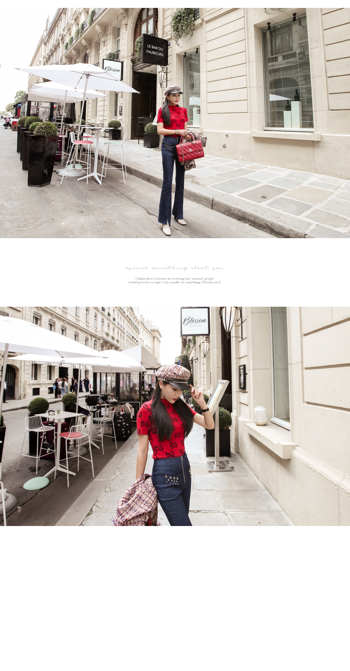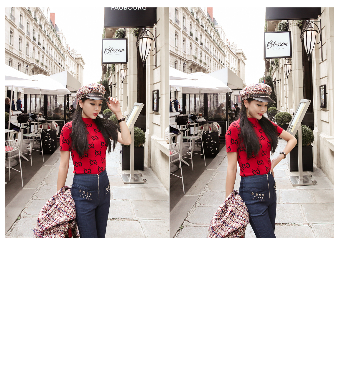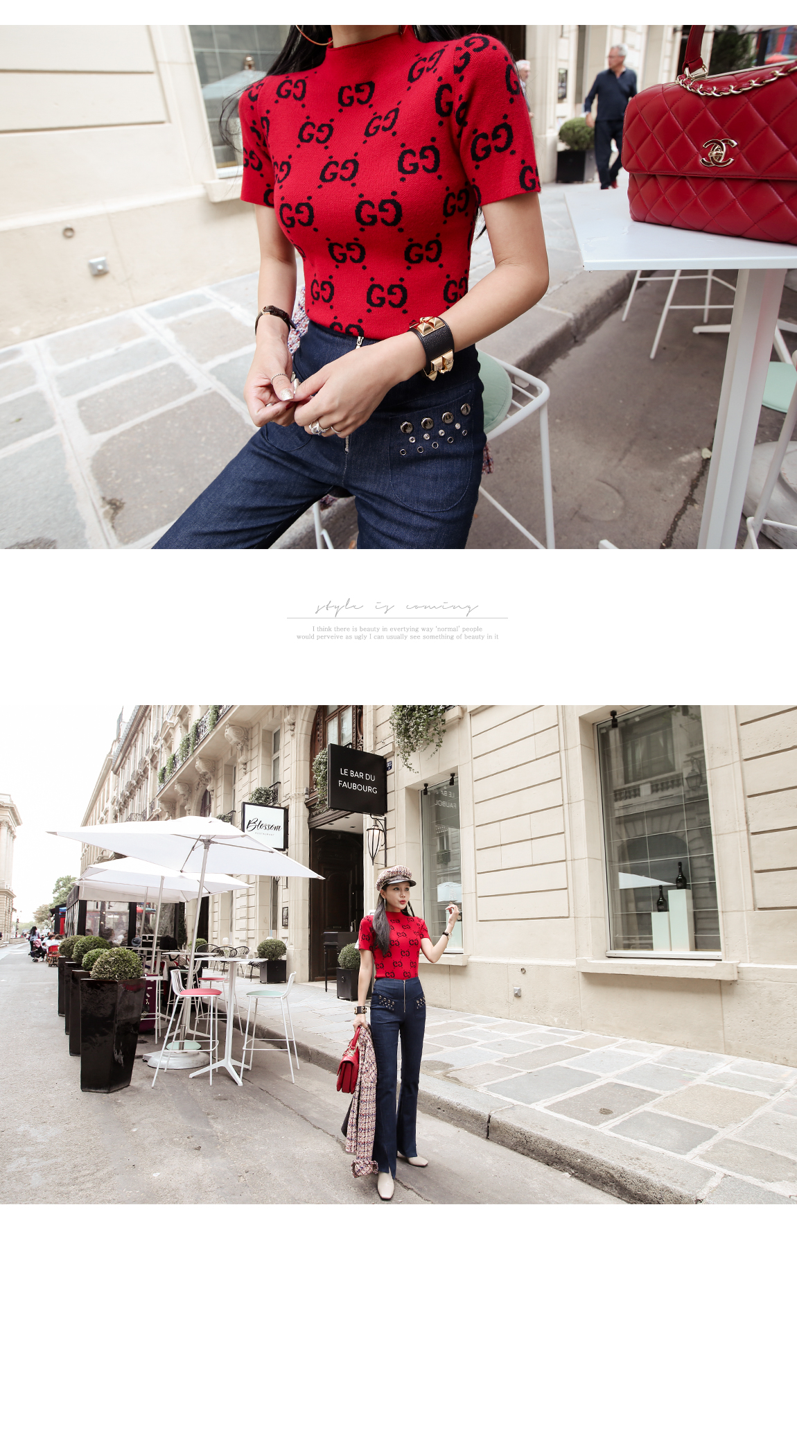 ハイウェストラインがボディーシルエットを長く見えるように作ってくれています
