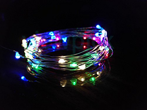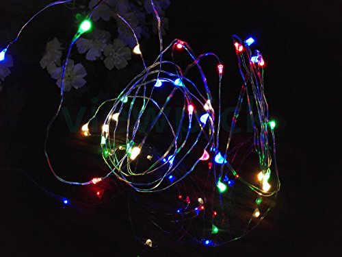 Viewpick Waterproof 30 LED Battery Powered Silver Wire String Starry Lights, 10 Feet (3 Meters), Multi-colored