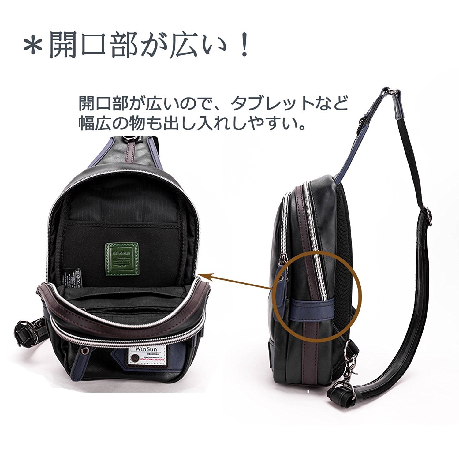 We changed to open the opening and closing part widely so as to make it easier to take out things inside even when wearing a bag.