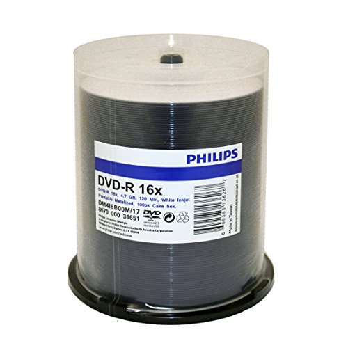 Philips Duplication Grade White Inkjet Hub Printable 16X DVD-R Media 100 Pack in Cake Box (DM4I6B00M/17)