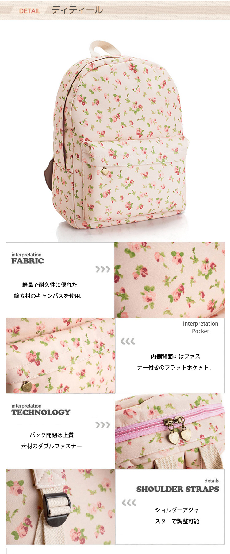 | シンプル オシャレ!そんな言葉がぴったりの上質なリュックサックができました。どんな服装にも合わせやすいボックスタイプのフォルムが自慢。ころんとまるい立体的なフォルムがキレイ。ひょいっと背負うだけで簡単におしゃれ上級者の雰囲気に。花柄、アニマル柄の全24柄展開!A4サイズも楽ラク収納できるのでお勉強タイムのお供にもぴったり!カジュアル感もキレイめ感もほしい方にはおすすめのデザインです。使い心地の良さと耐久性を併せ持ち、嬉しいロープライスが魅力です。軽量で耐久性に優れた綿素材のキャンバスを使用。ショルダー部分はクッション材入りで疲れにくいのでデイリー使いや旅行にモッテコイ。トップ部分には、手さげ用ハンドル、ダブルファスナー開閉、補強された背中部分で機能性も充実!シーンに合わせて幅広く使えます。 | |