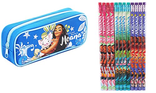 Disney Moana Pencil Case Zippered Bag Canvas (Color May Vary) Plus 12 Pcs Wood Pencils Pack