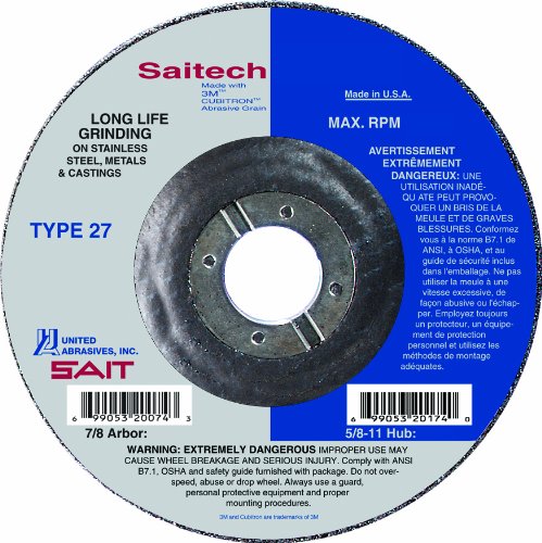 United Abrasives/SAIT 22264 Type 27 4-1/2-Inch by 1/8-Inch by 7/8-Inch Specialty Pipeline Cutting/Grinding Wheels, 25 Pack