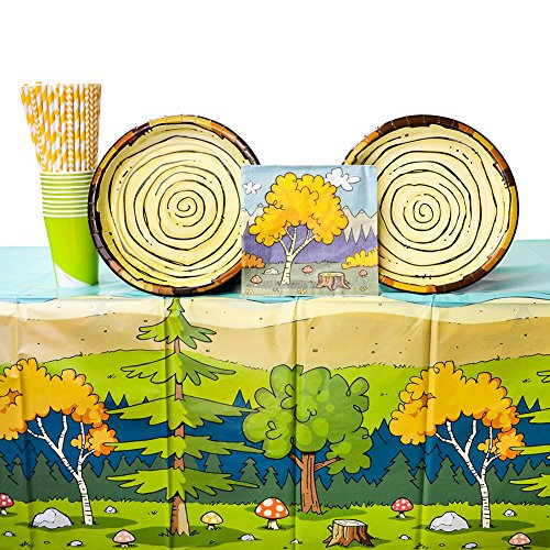 -. Title : Happi Woodland Friends Party Supplies Pack for 8 Guests: Straws, Dinner Plates, Luncheon Napkins, Cups, and Table Cover