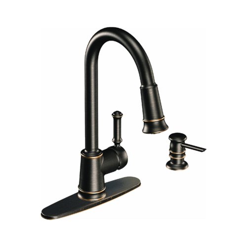 Moen CA87012BRB Pullout Spray High-Arc Kitchen Faucet with Reflex Technology from the Lindley Collection, Mediterranean Bronze