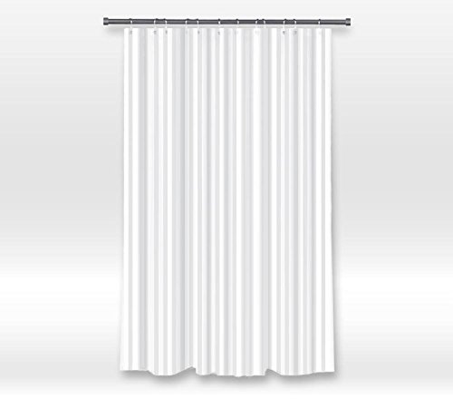 Hotel Quality Waterproof Washable Fabric Shower Curtain Liner with Metal Grommets,Mildew Resistant,White Tonal Damask Stripe, PVC-Free, EXTRA LONG Size (72 x 84 inches Length)