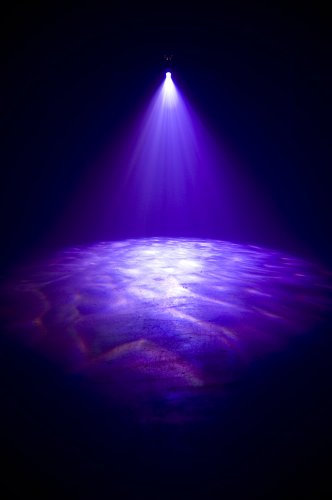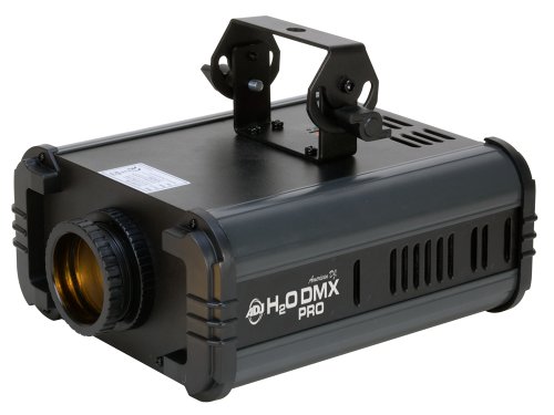 The American DJ H2O LED Pro is a multi-colored simulated water flowing effect with DMX-512 control and a bright, 50W LED source. The unit produces almost no heat, requires very little power (54W max), and can be used all night long. The LED is rated at 30,000 hours of use. This popular effect now offers professional features such as: full DMX control of the glass wheel, color wheel and dimming, 4-Button DMX Display, and the ability to operate in 2 different modes (DMX and Master/Slave). It also can be operated from the easy-to-use UC3 controller. The unit comes equipped with two interchangeable lenses (34- and 52-degree) that can be changed out depending on how wide of a beam is required for your event. Users can daisychain up to 6 units together not only through the XLR DMX links, but also through the IEC In/Out power links.