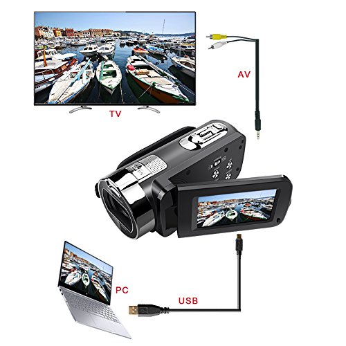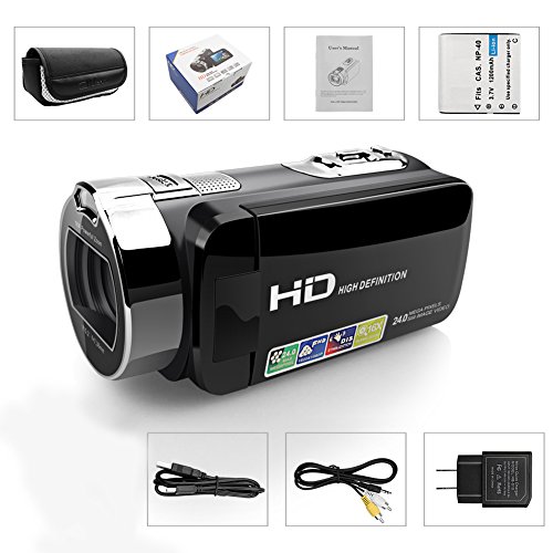 Studio : Eamplest Publisher : Eamplest Platform : Windows Format : NTSC Binding : Electronics Product Description Feature: Perfect beginner video camera for travel and daily recording, help you to save all your precious memories, easy to use even not much of a techy person, teens or younger, elder can control it very soon ?It should be charged for more than 8 hours before use, then 3 hours will be enough. Long lasting with NP-40 3.7V 1200mAh Li-ion battery. ?Push the switch on SD card before use (4GB-32GB card not included) How to Use: 1.Auto starting up and shut down when you unfold and fold the screen, also you can press the "POWER" for 2 seconds to control it 2.Press "MODE" to switch Photo/Video and Playback mode 3.Use the "UP/DOWN" switch to ajust light, also can use them to select photos and videos 4.Press recording to start video and press recording again to stop video, press "OK" to pause playing 5.Press "PHOTO" to take photos 5.Press "OK" to switch on or off LED fill light (LED fill light can't be used under Playback mode) Note:There is detailed user manual include please read carefully before use Specification Photo Resolution: 24M(6000*4500),20M(5120*3840),16M(4608*3472),12M(4000*3000),8M(3264*2448),5M(2592*1944),3M(2048*1536),1M(1280*960) Video: FHD 1920*1080,HD 1280*720,VGA 640*480 CMOS Sensor: Max 24.0 mega pixels Display Screen: 2.7" LCD Self Timer:2/10s USB Port: USB 2.0 TV Output: NTSC/PAL Power: Li-ion battery CAS NP-40 3.7V 1200mAh Operating: Windows7/2002/XP/Vista Camera lens: Fixed lens, F/3.2, f=7.36mm EV Exposure: -2.0 EV to 2.0 EV Language: Multi-language Size: 4.92*2.28*2.28in Item Weight: 0.66lb Package Include: 1 X DV Camcorder 1 X Li-ion batteries 1 X Camcorder Bag 1 X AV Cable 1 X USB Cable 1 X AC Adaptor 1 X User Manual 0