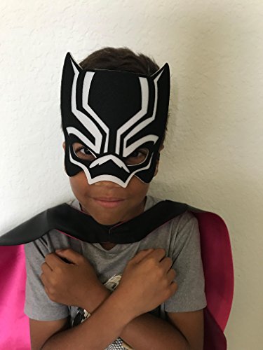-. Brand : sbk3 -. Color : Black -. Department : unisex-child -. Feature : Its time to make our little boys the superheroes of tomorrow because they are on a mission to save our generation! with the new Black panther comic dress up costumes for kids heroic playing ground both indoors and outdoor activities. / Double sided satin cape black outside light pink interior design measuring approximately 27.6 inches and a durable felt mask which is elastic and can fit some adults depending on your size . / Velcron neck which makes it easy to put cape on and off easily / perfect for gift and kids playing ground and parties / Toddlers 2-12 years -. Label : Sbk EnterP.R.Ise LLC -. Manufacturer : Sbk EnterP.R.Ise LLC -. MPN : NA -. PartNumber : NA -. ProductGroup : Apparel -. ProductTypeName : CHILDRENS_COSTUME -. Publisher : Sbk EnterP.R.Ise LLC -. Size : Medium -. Studio : Sbk EnterP.R.Ise LLC -. Title : Sbk Marvel Kids Superhero Black Panther Dress up Cape and Mask Set Halloween