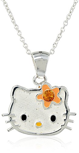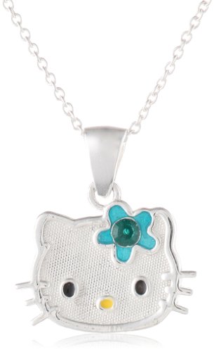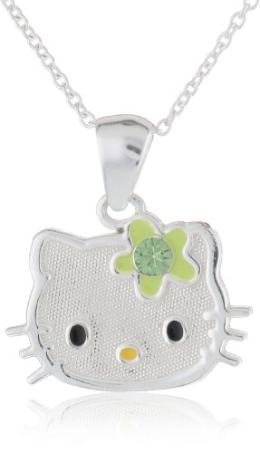 Sterling silver necklace featuring Hello Kitty pendant with simulated birthstone bow
