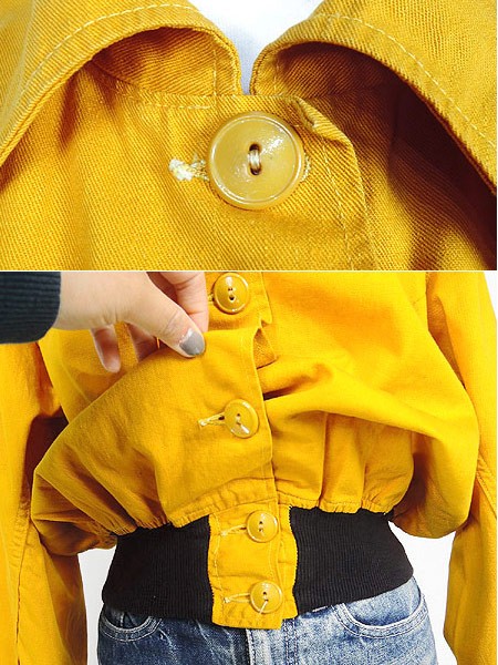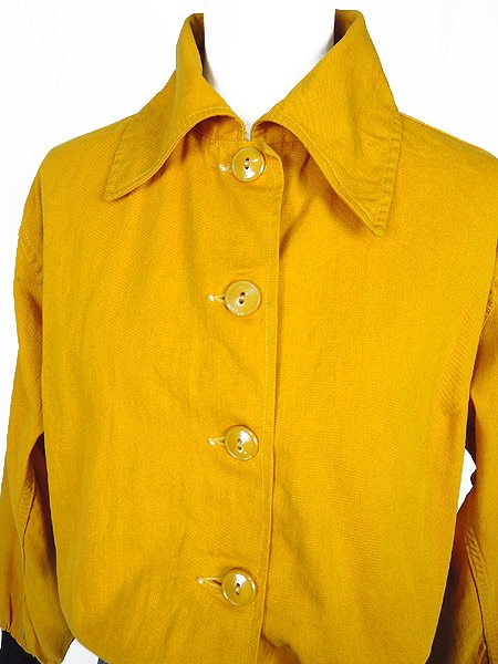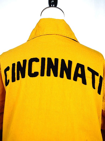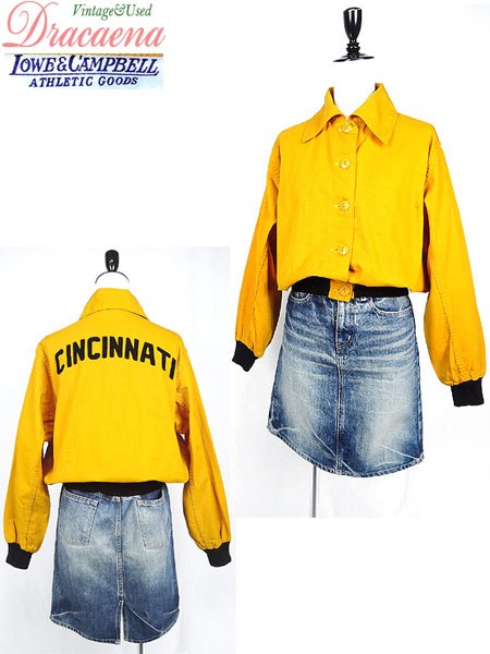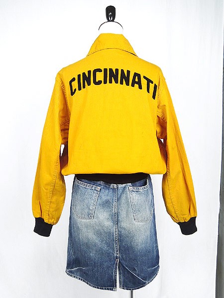 Ladies ブランド- カラー黄・黒 メール便不可 コンディション★★★ モデル- 素材記載なし 表記サイズ記載なし スタッフコメント40〜50s位、背中にcincinnatiワッペン入り。鮮やかな黄色に黒のリブ、ワッペンが映えます◎。ボタン塗装剥がれあり。全体数か所に汚れあり。左襟に糸の出ダメージあり。 実寸サイズ 着丈 55 cm 身幅 55 cm 肩幅 42 cm 袖丈 57 cm ※ウエスト・ヒップ以外は平置き採寸