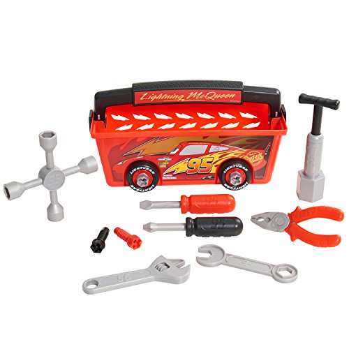-. Feature : Cars 3 Quick Fix Tool Box has everything you need to take your pit crew tools on the go with you! / Comes in a red plastic carry case featuring Lightning McQueen graphics and a durable black handle. / Tool box even comes with built in, removable tires for practicing your speedy tune ups. / The set come with 13 play tools including: two wheels, one pair of pliers, two screwdrivers, four Phillips screws, one wrench, one spanner, one cross wrench, and one air pump. / Ages 3+ / The Disney Pixar Cars 3 Quick Fix Tool Box has everything you need to take your pit crew tools on the go with you! This racer-ready set comes in a red plastic tool case featuring Lightning McQueen graphics and black handle so you can take your tools with you wherever you go! This amazing tool box even comes with built in removable tires for practicing your speedy tune ups! The set come with 13 play tools including: two wheels, one pair of pliers, two screwdrivers, four Phillips screws, one wrench, one spanner, one cross wrench, and one air pump.
