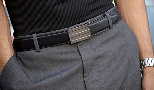 -. Feature : BETTER FIT - 140% More Adjustable vs. other men's track belts and 800% vs. traditional men's belts. Hidden 10" track (Not 7"), creates over 40+ size positions to choose from. Now you can adjust your belt ¼ at a time, for a perfect fit. / BETTER TECHNOLOGY - Patented, spring-loaded ratchet belt buckle is more reliable, sleeker and lasts longer vs. competitor's magnet ratchet buckles that stick & malfunction. Buckle detaches to pass thru TSA airport security with belt still on, or swap belt colors / buckles. Buckle has built-in Bottle Opener. / BETTER QUALITY - Alloy Buckle & Classic Full-Grain Leather, double-stitched belt. Full-Grain is the #1 grade of cowhide & improves with age. Belts are One-Size and fit any waist from 24" up to 44" / XL sizes up to 54" (1-3/8"" wide). / BETTER STYLE - Cool buckles designed for Men in our California studios. Choose solid and open face styles to mix and match. Interchangeable with our other standard fashion track belts. This is Fashion belt > NOT a Gun Belt. / BETTER WARRANTY - 30 Day Money Back Guarantee / 1 Year Full Warranty / By KORE Essentials - a USA Company.