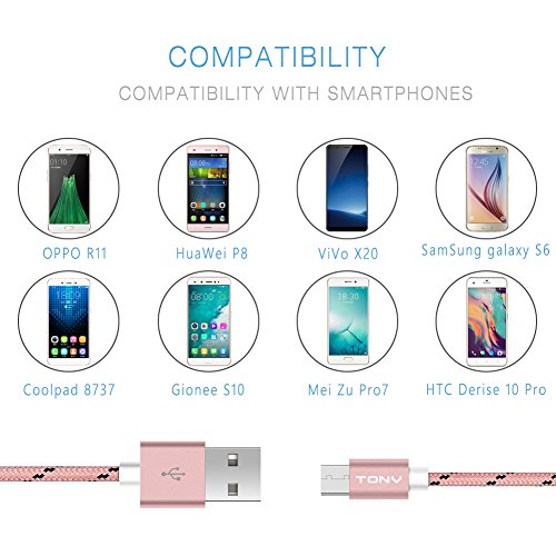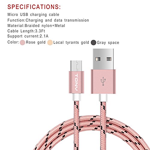 Studio : TONV Publisher : TONV Binding : Wireless Phone Accessory Product Description Pack of Micro USB Cable - This flexible 3FT micro usb cables are ideal for a variety of everyday connection needs and highly portable Universal Compatibility - Support most Android tablets -Windows phones and cell phones with a Micro-USB port -Compatible with Samsung Note 1/2/4/5, Galaxy S3/S4/S6 Edge S7, Nokia Lumia, LG, HTC ONE and more Fast Charge Sync - Ensure a maximum charging speed up to 2.1A, charge faster than most standard cables, and work better for tablets and quick charge devices Extra Durability - The stainless steel connector heads slot in easily and steadily, and won't get loose or fall out of your devices as your normal micro cables. This nylon fabric braided jacket is smooth, flexible tangle free, which makes your life more convenient ARRANTY POLICY: - Our company provides customers with warranty of 18 months from the date of purchaseIf you have any questions, don't hesitate to contact us! Package Contents: TONV Nylon Braided Micro USB Cable [3-Pack Black 3FT]