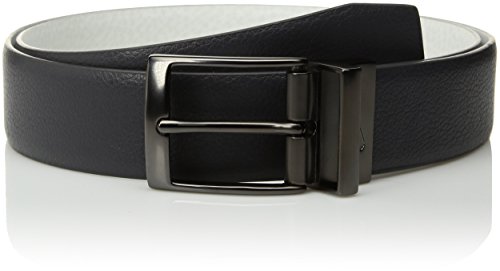 Studio : Nike Publisher : Nike Binding : Apparel Product Description Nike reversible pebble leather belt with feather edge. Nike reversible technology allows buckle to rotate at base to offer two unique belts, great for travel. Pebble leather strap with brushed gunmetal harness buckle and engraved 'swoosh' logo. 35 mm width. 0